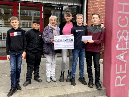 Ein verfrühtes Weihnachtsfest bescherten einige unserer Schülerinnen den Vierbeinern des Bramscher Tierschutzvereins „Lichtblick aller Pfoten“. Maya Natschke, Leela Bettig, Mina Stutzke und Jule Stutzke vom Kurs „Bildung für nachhaltige Entwicklung (BNE)“ aus dem 6. Jahrgang überbrachten dem Verein, der unter anderem Hunde und Katzen in Not aufnimmt und an neue Besitzer vermittelt, neben Tierfutter auch einen Kratzbaum, ein Hundekörbchen und Spielzeug. Sie hatten zuvor Waffeln gebacken und auf dem Schulhof verkauft sowie selbst gebackene Plätzchen auf dem Bramscher Wochenmarkt angeboten. Auf diesem Wege kam insgesamt die stolze Summe von 370 Euro zusammen.