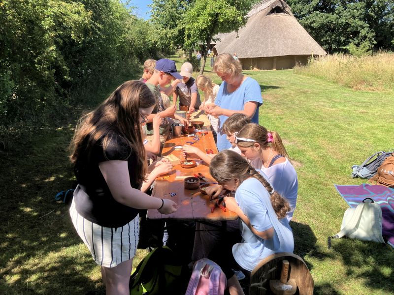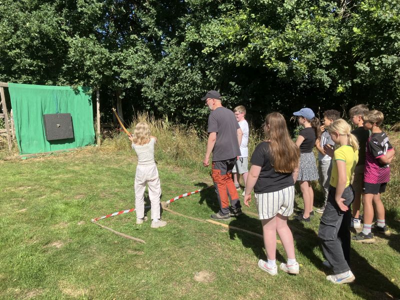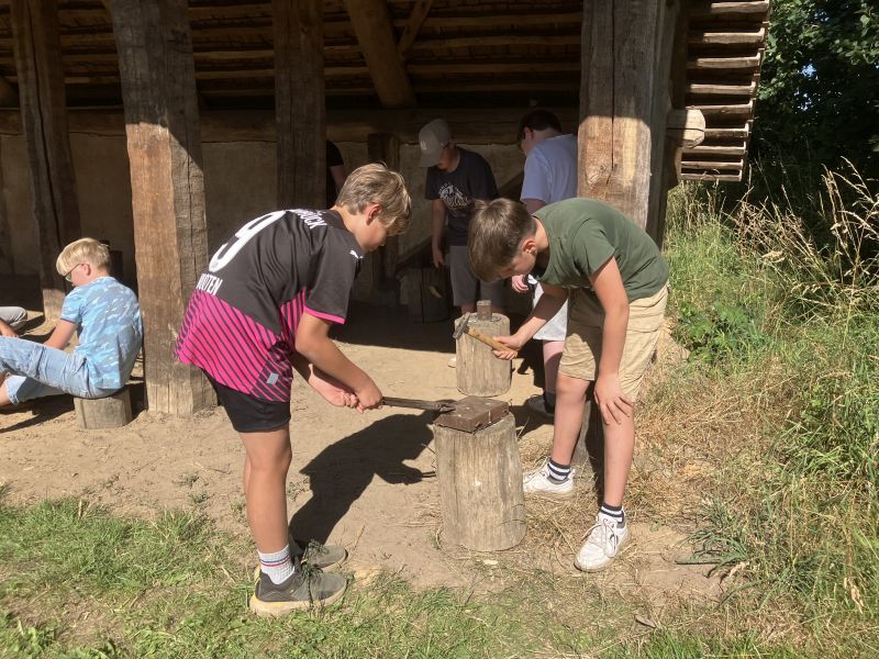 Im Eisenzeithaus haben die Schülerinnen und Schüler Interessantes über die Geschichte unserer Region gelernt und konnten vor allem viel selber machen. Beim Schmieden erfuhren sie zum Beispiel, wie anstrengend dieses Handwerk war. Und beim Bogenschießen merkte jeder, dass es nicht so einfach war, ein Ziel zu treffen. Zudem wurde Schmuck hergestellt und Wikinger-Schach gespielt.