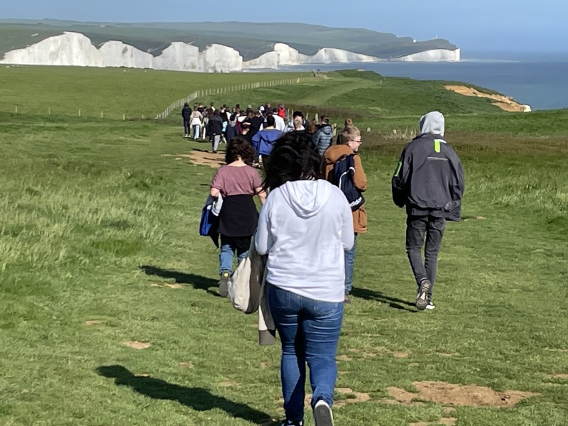 Nach langer Pause ging es für 48 Schülerinnen und Schüler mal wieder in den wunderschönen Süden Englands. Obwohl wir mit 1,5-stündiger Verspätung losgefahren sind, es gibt nämlich noch ein Bramsche bei Lingen und dort hatte der Busfahrer gewartet, haben wir pünktlich die Fähre in Dünkirchen erreicht und konnten sogar noch einen kleinen Strandspaziergang machen, bevor wir den ersten Abend in unseren Gastfamilien verbracht haben. In den nächsten Tagen haben wir schöne Ausflüge unternommen, z. B. nach Brighton in den Royal Pavilion oder zum Hever Castle, wo wir bei den englischen Führungen interessante Dinge gelernt haben und im Wasserlabyrinth viel Spaß hatten. Auch die Küstentour mit einer Wanderung zu den Seven Sisters war toll. Am letzten Tag haben wir uns von unseren Familien verabschiedet und uns auf den Weg nach London gemacht. Dort haben wir Tube fahren geübt, Londoner Nieselregen erlebt, vom London Eye aus viele Sehenswürdigkeiten gesehen, die wir bisher nur aus den Englischbüchern kannten, und die Stadt zu Fuß erkundet. Dann waren wir auch bereit für die Rückfahrt. Nach einer sehr welligen und bewegten Fährfahrt war das Schlafen im Bus sehr erholsam, aber nicht ausreichend. Ganz müde, aber voller Eindrücke haben uns die Eltern wieder in Empfang genommen.