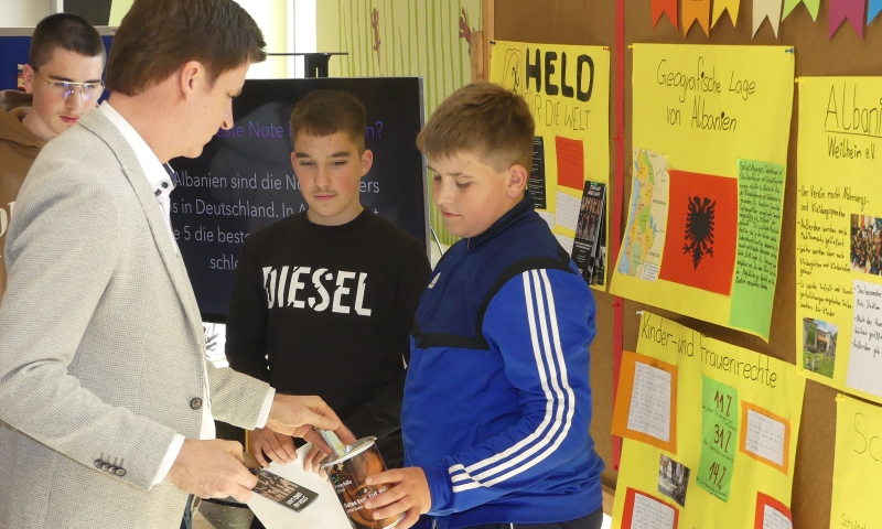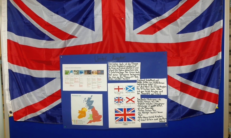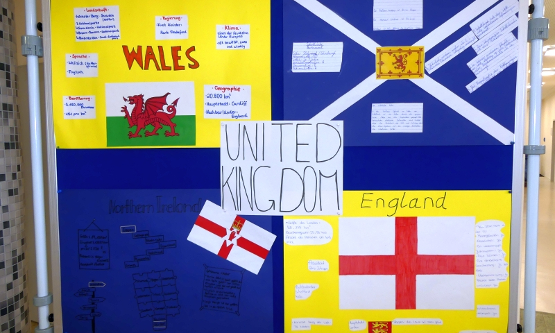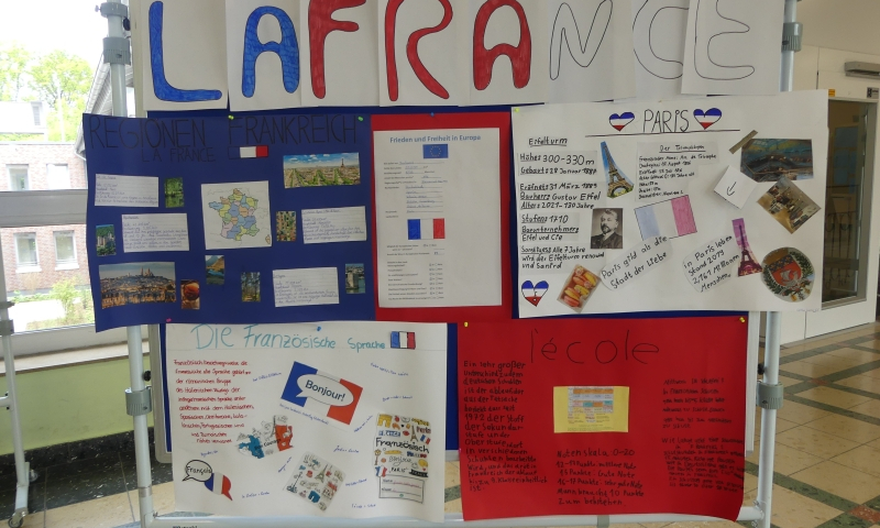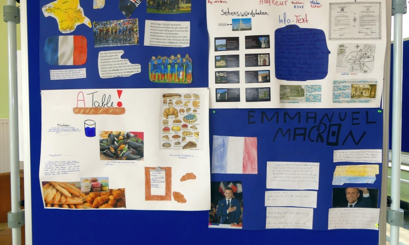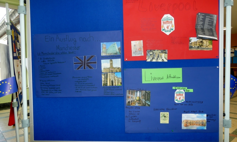 Die Jahrgangsstufen 5-9 präsentierten ihre Ergebnisse auf Infowänden in der unteren und oberen Pausenhalle.