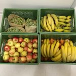 Immer montags liefert der Biohof Kruse aus Bramsche Obstkisten mit vier Komponenten. Stets dabei sind Äpfel und Bananen, hinzu kommt noch Saisonware. Bei den Schülerinnen und Schüler kommt das Angebot sehr gut an und die Rationen sind stets schnell vergriffen.