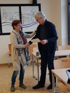 Herr Kuhnert-Kohlmeyer ist seit 42 Jahren Diakon der Landeskirche Hannover und seit über 30 Jahren als katechetische Lehrkraft im Schuldienst. Im Jahr 2004 wechselte er von der Orientierungsstufe an unsere Realschule. Daneben unterrichtete er auch an der Berufsbildenden Schule in Bersenbrück. Er verlasse die Schule nun „mit einem weinenden Auge, weil ich gerne Unterricht erteilt habe“, sagte Herr Kuhnert-Kohlmeyer. Gleichzeitig freue er sich aber auch auf neue spannende Aufgaben und Herausforderungen, die beispielsweise die zahlreichen ehrenamtlichen Betätigungsfelder in der evangelischen Kirche bieten.