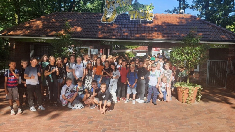 Eine tolle Klassenfahrt mit viel Spaß und guter Stimmung hat der Jahrgang 6 erlebt. Bei bestem Wetter ging es zur Jugendherberge an der Thülsfelder Talsperre. Weil es so warm war, konnte sogar im See gebadet werden. Weitere Höhepunkte des Programms waren der Besuch des Tier- und Freizeitparks, in dem vor allem die Achterbahn und der Spring-Ride-Tower sehr beliebt waren, und der Aufenthalt im Kletterwald. Dort testeten die Schülerinnen und Schüler in teils schwindelerregender Höhe ihre eigenen Grenzen aus. Zudem wurde im Museumsdorf Cloppenburg gekocht und gebacken wie früher. Ein weiteres Highlight dieser sehr schönen Fahrt war für viele aber natürlich auch die Jahrgangsdisco in der Jugendherberge.