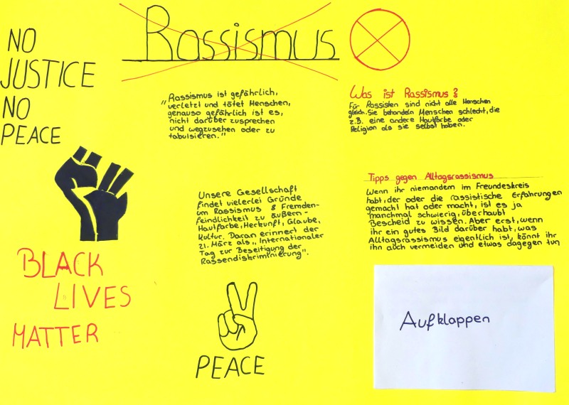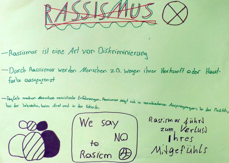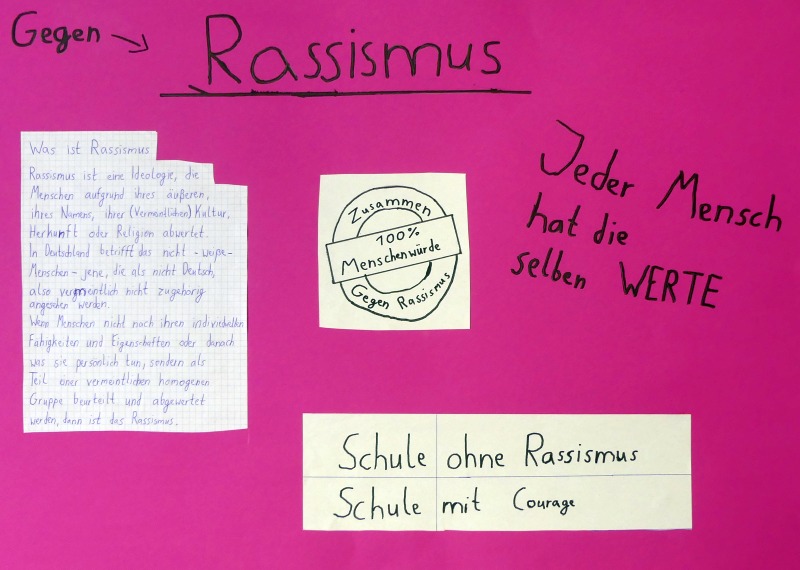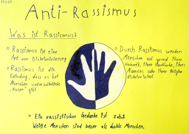 Ein Zeichen gegen Rassismus haben unsere Schülerinnen und Schüler in den vergangenen Tagen gesetzt: Mit zahlreichen unterschiedlichen Aktionen beteiligten sie sich in ihren Klassen an den internationalen Wochen gegen Rassismus, die diesmal unter dem Motto „Misch dich ein!“ stehen. Es entstanden viele tolle Projekte, die vor allem eine Botschaft hatten, die unseren Schülerinnen und Schülern besonders am Herzen liegt: Allen Menschen – egal, wie unterschiedlich sie auch sind – stehen die gleichen Rechte und dieselbe Wertschätzung zu!