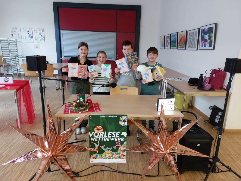 Neben Nina Kramm waren Svea Tanzusch, Ben Rodefeld und Mika-Joel Rosenke als Klassensiegerinnen und -sieger in die Endrunde gekommen. Sie alle konnten sich über eine Urkunde und ein Buchgeschenk, welches vom Förderverein der Schule finanziert wurde, freuen.