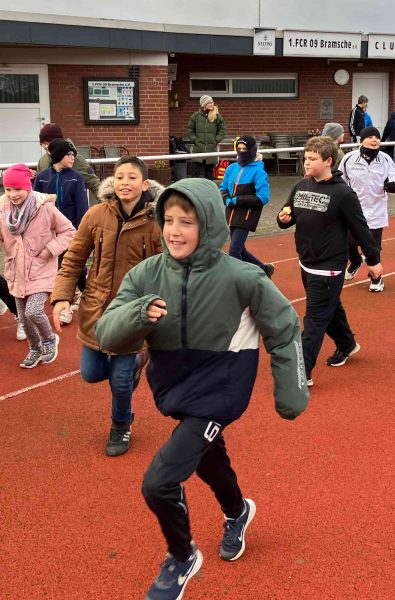 Nach der gelungenen Premiere im Vorjahr hat unser projektorientierter Kurs „Bildung für nachhaltige Entwicklung“ (BNE) aus dem Jahrgang 8 erneut einen Sponsorenlauf veranstaltet. Bei eisigen Temperaturen gingen die Schülerinnen und Schüler der 5. bis 7. Klassen an den Start, um möglichst viele Runden um den Sportplatz am Wiederhall zu laufen. Mit dem Erlös soll zum einen der Schulhof verschönert, zum anderen die Kinderkrebshilfe unterstützt werden. Beim letzten Sponsorenlauf kamen über 4000 Euro zusammen. Wir sind gespannt, welche Summe es diesmal wird