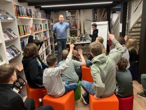 Jahrgang 7 beim Buchcasting in der Stadtbücherei