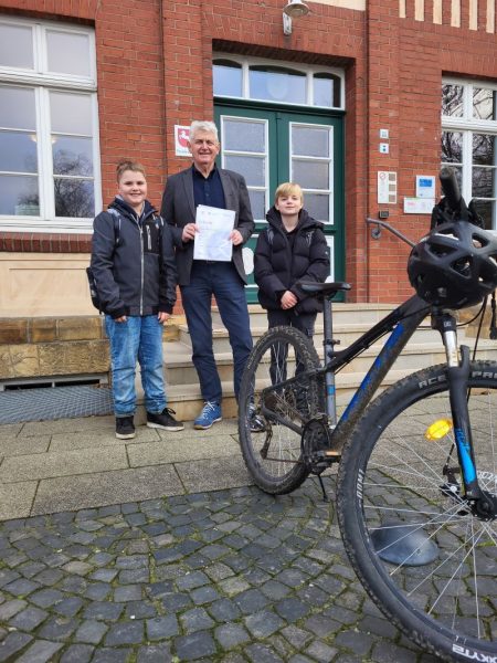 Bei der geradelten Kilometerzahl erreichten wir ebenfalls ein tolles Ergebnis. Über 19.000 Kilometer legte unser Team mit dem Fahrrad zurück. Als besonders gute Radler erwiesen sich dabei die Schülerinnen und Schüler der Klassen 6b (3456 Kilometer) und 6a (3196 Kilometer). Sie legten von allen unseren Klassen die größten Strecken zurück und nahmen dementsprechend die Urkunde für unsere Schule aus den Händen von Bürgermeister Heiner Pahlmann entgegen.