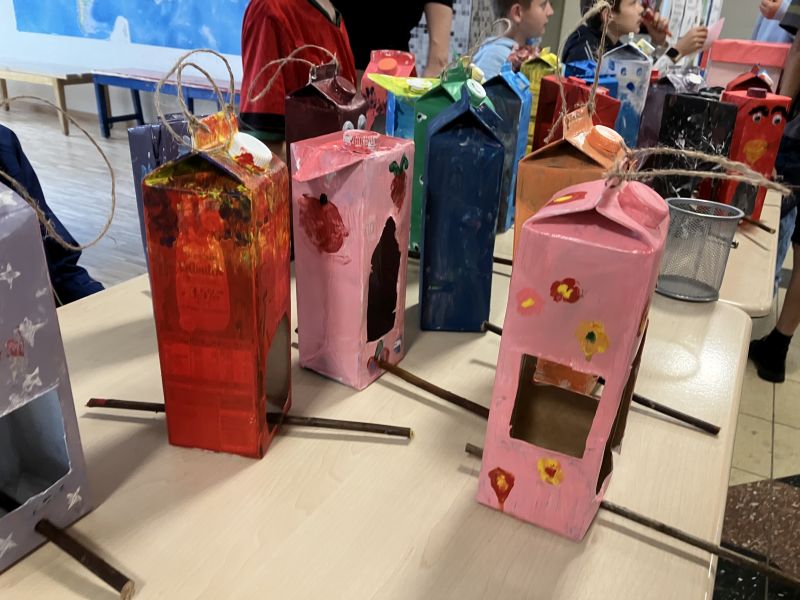Das Angebot ließ dabei keine Wünsche offen. Zur Auswahl standen zum Beispiel der Bau von Insektenhotels aus alten Konservendosen und von Vogelhäusern aus TetraPaks. Außerdem wurden Saatbomben angefertigt, Taschen bestickt, Wandersteine gestaltet und Marmelade gekocht. Einige Schülerinnen und Schüler stellten auch Dosenlaternen her, verarbeiteten alte Bücher zu Vasen und