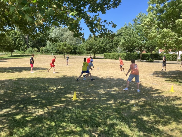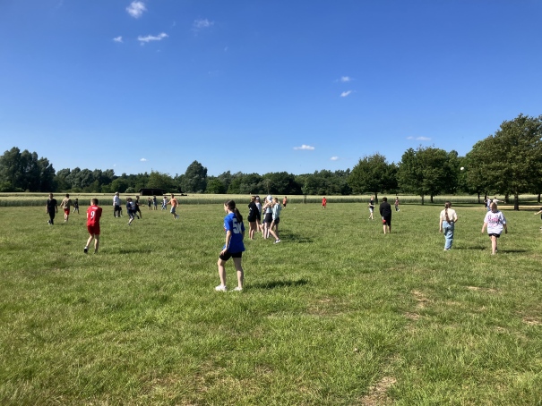 Die Klassenpatinnen und Klassenpaten haben für die Jahrgänge 5 und 6 einen Spieletag in den Hasewiesen organisiert. Bei bestem Wetter war zunächst der Jahrgang 6 an der Reihe, einen Tag später dann der Jahrgang 5. Für jeden war etwas dabei: Während die einen Fußball oder Monsterball spielten, hatten die anderen Spaß beim Fangen oder Karten spielen. Und natürlich blieb auch genügend Zeit für das Toben auf dem Spielplatz, ein kleines Picknick und nette Gespräche untereinander.