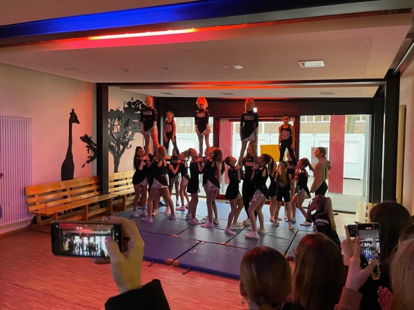 Dabei gab es viel zu entdecken – von spannenden Experimenten in Physik und Chemie bis hin zu den ägyptischen Hieroglyphen, mit denen die jungen Besucher ihre eigenen Lesezeichen gestalten konnten. Darüber hinaus stellten sich unter anderem die Schulsanitäter vor, bot das Fach Kunst eine Ausstellung besonders gelungener Arbeiten und luden die Musiklehrkräfte zum ersten Spielen auf Ukulelen und Cajones ein. Höhepunkte des Programms waren aber eindeutig die Tanzvorführungen der Cheerleader des TuS Bramsche. Bei den Auftritten der jungen Turnerinnen, zu denen auch zahlreiche Realschülerinnen gehörten, versammelten sich alle Besucher in der Aula der Schule, um die akrobatischen Kunststücke zu bestaunen.