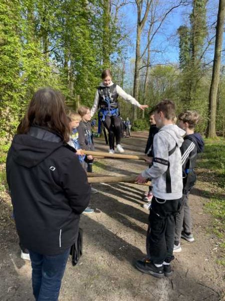 Das Gemeinschaftsgefühl und den Teamgeist haben unsere 7. Klassen in der vergangenen Woche beim Besuch des Hochseilgartens auf dem Gelände des Varusschlacht-Museums in Kalkriese gestärkt. In mehreren Metern Höhe erfuhren die Schülerinnen und Schüler persönliche Grenzerlebnisse und erlebten das Gefühl absoluten Vertrauens und Zusammenhalts in der Gruppe. Auch Ungeübte oder Ängstliche konnten leicht einen Zugang finden und wagten sich nach ersten Erfolgen – und dank der Unterstützung des Teams – an größere Herausforderungen des Seilgartens heran. Aber letztlich entschied natürlich jeder für sich selbst, wie weit er gehen wollte. Unterstützung erhielten die Schülerinnen und Schüler dabei von den Trainern der Games and Ropes Erlebnispädagogik.