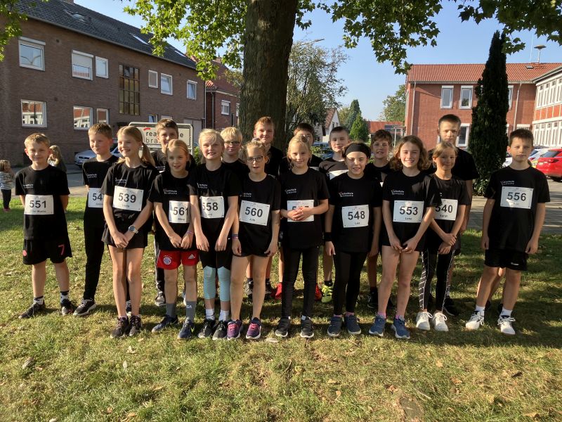 Mit 25 Läuferinnen und Läufern aus dem 5. und 6. Jahrgang hat unsere Schule am Freitag am Junior-Cup beim Tuchmacher-Stadtlauf teilgenommen. Auf der zwei Kilometer langen Strecke ging es von unserer Schule aus einmal durch die Innenstadt. Alle gaben ihr Bestes und erreichten tolle Zeiten. Entsprechend gab es natürlich auch eine kleine Belohnung: Für alle Läuferinnen und Läufer spendierte die Schulleitung ein Realschul-T-Shirt. Außerdem gab es für jeden Teilnehmer eine Medaille.